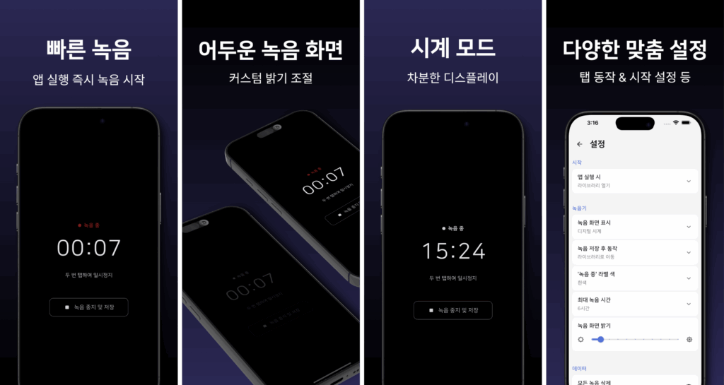 앱 실행 즉시 녹음 시작 & 어두운 녹음 화면